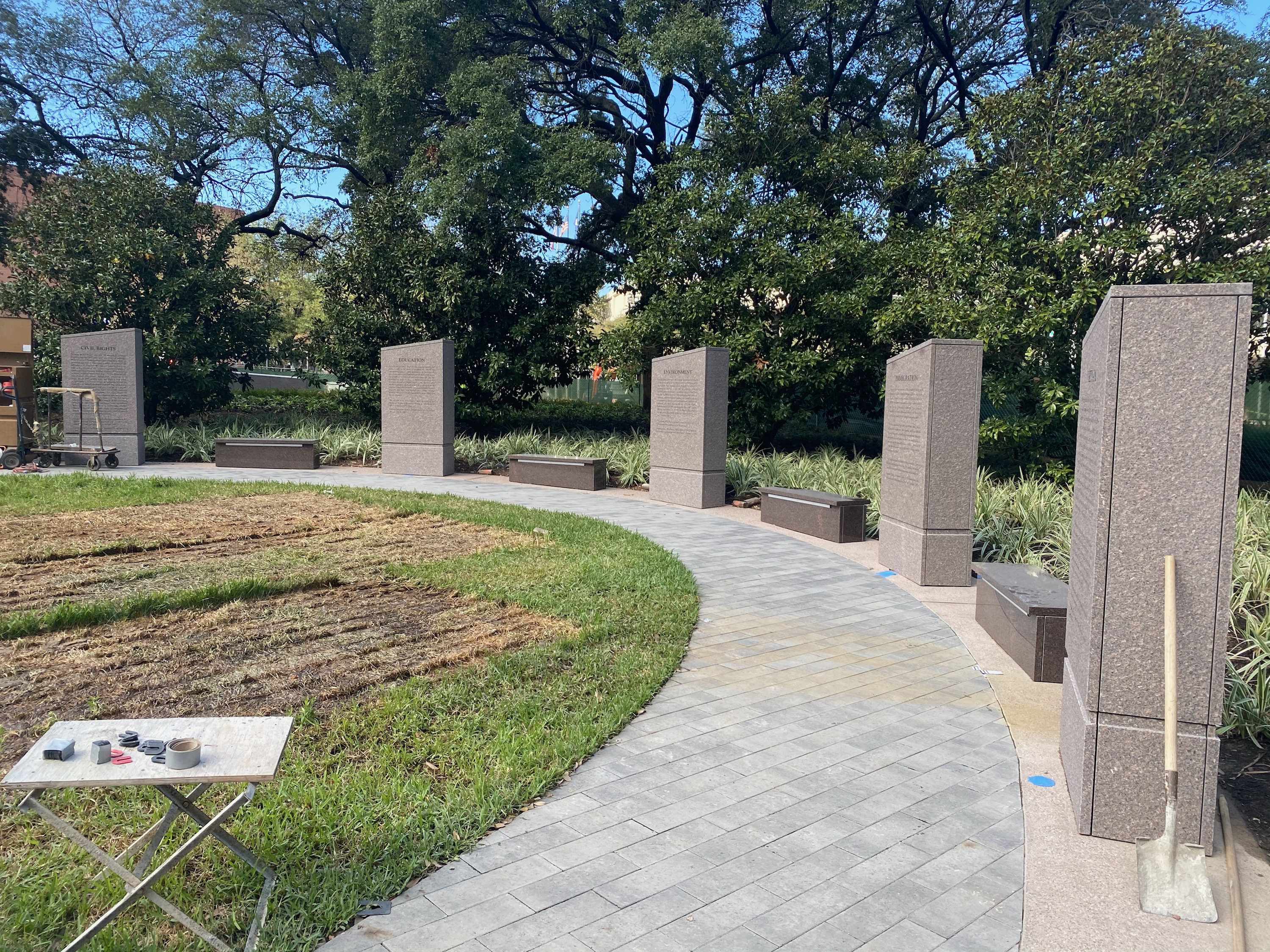 Here are the most recent photos of the park. The job site will be closed this week and re-opened to install the granite and the statue.